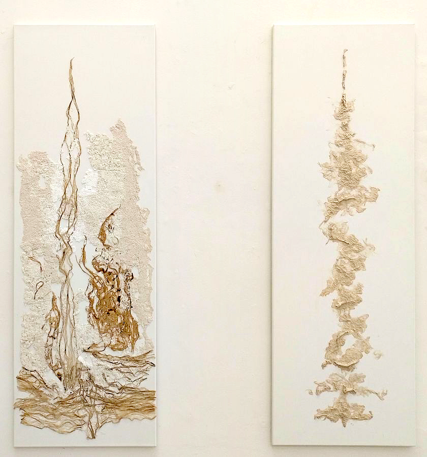 Das Gegenstück zu dichten und massiven Metallplatten bilden Arbeiten aus trockenen Pflanzenfragmenten und Pflanzenfasern, die entweder auf weißer Leinwand oder auf handgeschöpftem Papier aufgebracht sind. Diese Werke, die an fossile Spuren in Sedimentgesteinsschichten erinnern, strahlen ein nostalgisches Gefühl von Zerbrechlichkeit, Vergänglichkeit und dem Aussterben organischen Lebens aus. Im Gegensatz dazu erinnert die chemisch zersetzte Oberfläche der Metallplatten an die durch Erosion geformte Erdoberfläche und lässt so auch die Konfrontation dramatisch unterschiedlicher Zeitdimensionen in der organischen und anorganischen Welt erahnen. Während das Leben einer Pflanze nur Monate, höchstens Jahre dauert, vollziehen sich geologische Prozesse im Ausmaß von Millionen und Hunderten von Millionen von Jahren. Dies ist jedoch nur eine der möglichen Interpretationen, die Marlies Schultes Materialabstraktion dem Betrachter bietet. Gemeinsames Merkmal beider Positionen ihrer Arbeit ist die Abkehr vom existenziellen Pathos und die Hinwendung zur stillen Kontemplation von Materie, Zeit und Raum.